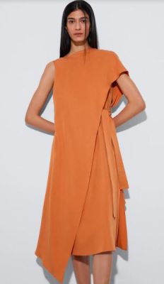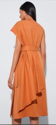 De Adolfo Domínguez, este vestido con asimetría en un naranja tostado. Lo encuentro fluido y sentador. Le quedaría muy lindo, ¿no creen?