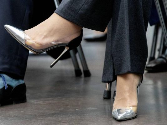 Los complementos de Magrit han sido los salones destalonados en metal plata-dorado con el bolsito a juego. Suma noche, aunque esa plataformita agregada que la Reina ha comenzado a meter en todos sus salones, no termina de convencerme. No en estos zapatos.