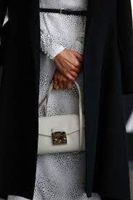 Con los salones blanco y negro de Magrit y el bolsito en blanco roto de Furia.
