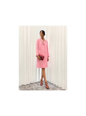 Doña Letizia buscó en su fondo de armario y halló este vestido abriguito rosado de Carolina Herrera. Confieso que en el estreno me gustó, ya no. Los botones me parecen baratijas. ;