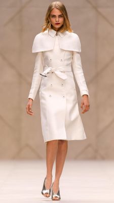 Di con este vestido;trench;de Burberry y me parece una maravilla. Mi reticencia con respecto a estas modernas hombreritas que aquí sí me parecen ideales. De seguro le favorecería a la Reina.