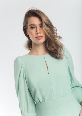 Se trata de un mono en verde veronés con pantalones de remate acampanado y detalle abotonado en la cintura. Le queda perfecto. Me ha encantado.
