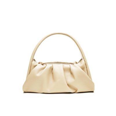 De complementos agrego estos salones de L. K. Bennet bicolor con finos vivos en negro junto a este bolsito de TheMoiré con fruncidos en crema.