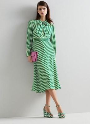 De L. K. Bennet, este vestido de lunares sobre verde de lazada al cuello.