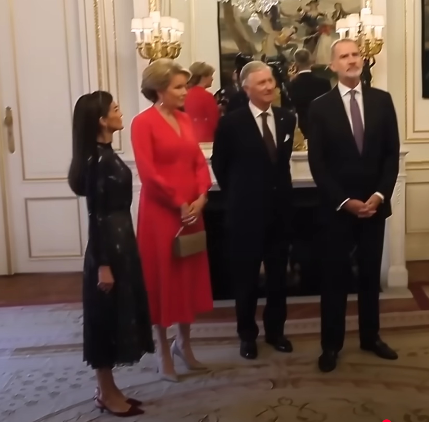En la trigesima edición del festival Europalia España donde se difunde la riqueza cultural española, Doña Leticia lució un vestido muy simple, de color oscuro que no le quedaba bien. La reina Matilde de Begica lucia un vestido rojo que la hacia resaltar y los reyes Felipe de España y Felipe de Belgica se veian muy bien . Para los hombres la moda no existe. Con ellos ningún problema. El hermoso vestido largo de color fresa sugerido para esta ocación , hubiera sido estupendo usado por Doña Leticia que tiene el tipo perfecto para lucirlo.