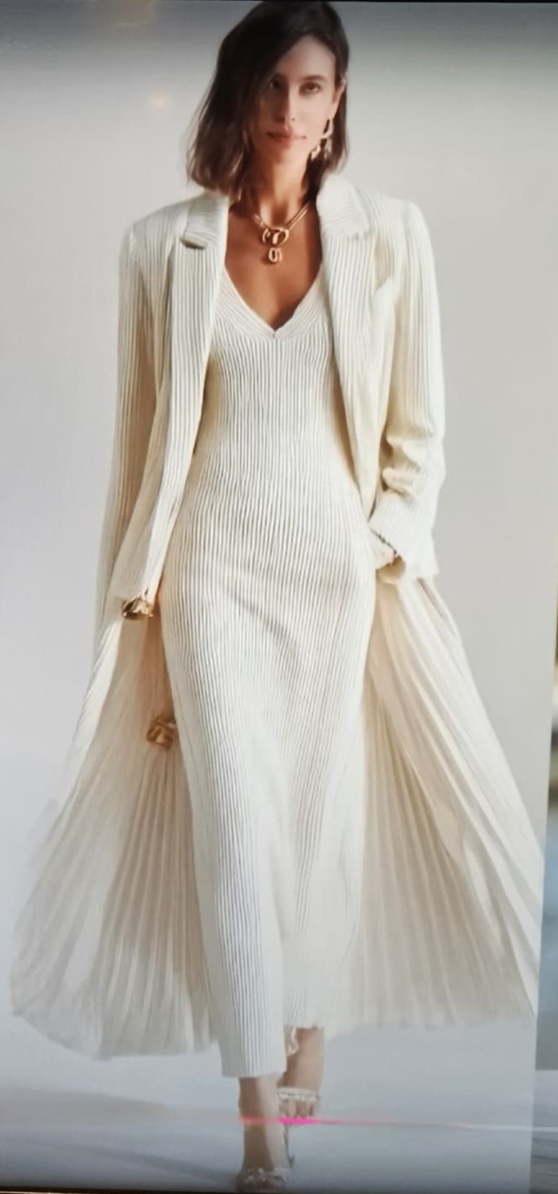 El conjunto blanco de pantalón y abrigo es super elegante, también me encantó el vestido en tweed,eso sí que es estar cómo una reina.