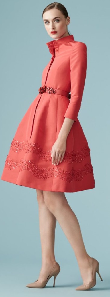 Esta propuesta pertenece a Nymeria. Se trata de un vestido-abrigo de verano en naranja fuego de Carolina Herrera. Creo que hay que mencionar dos ajustes: