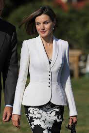 Doña Letizia se ha decantado por un reciclaje: El atuendo que lució por primera vez en la Pascua Militar de 2016. Se trata de una chaqueta blanca de botonadura negra que yo llamo ‘chaqueta miriñaque’, pues está cortada de manera que da forma a las caderas. Un top negro acompañado de una falda de seda con terminación en bordados Richelieu. Todo firmado por su modisto de cabecera.
