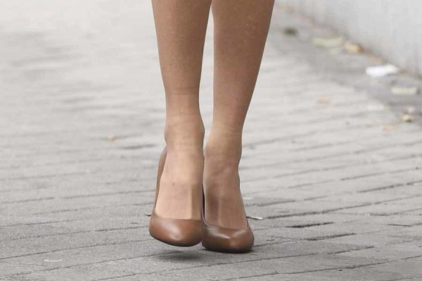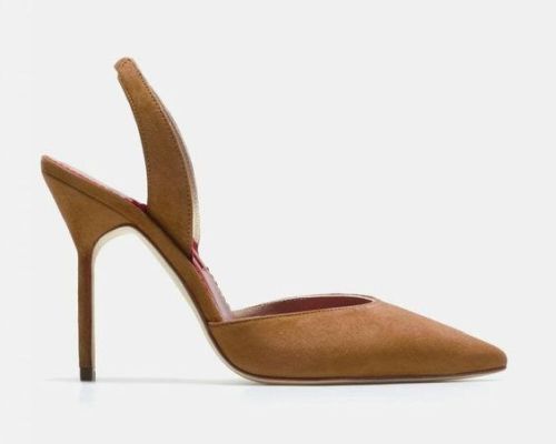 Para seguir con la línea de la Reina, los destalonados de CH en camel o los camel de Uterque en tacón medio.