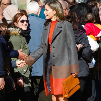 De complementos, optó por el juego de calzado de tacón block y clutch en camel de Hugo Boss que ya están en el armario real.