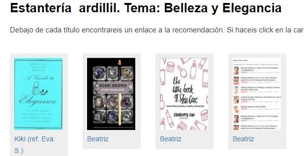 Estantería ardillil. Libros: Belleza y Elegancia Debajo de cada título encontrareis un enlace a la recomendación. Si haceis click en la carátula, se os abrirá una página con más información sobre el libro: