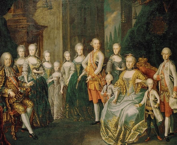Maria Teresa necesitaba emparentar con la mayor cantidad de vecinos poderosos que fuera posible, y por eso necesitaba parir hijos para casarlos con algun príncipe o rey o noble o lo que fuera. No fue distinto con Marie Antoniette, que desde que nació ya estaba destinada a casarse con alguno que su madre decidiera.