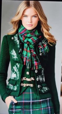Y finalmente otro verde, con bufanda como ahora está empezando a lucir, una chaqueta pegada como a ella le gusta, pero de colores fuertes, contundentes, alegres, nada de grises o anodinos. Algo que cante elegancia, dinamismo y conalguna joya hasta reinado. Nosotros sí que nos veríamos espectaculares con una combinación así.