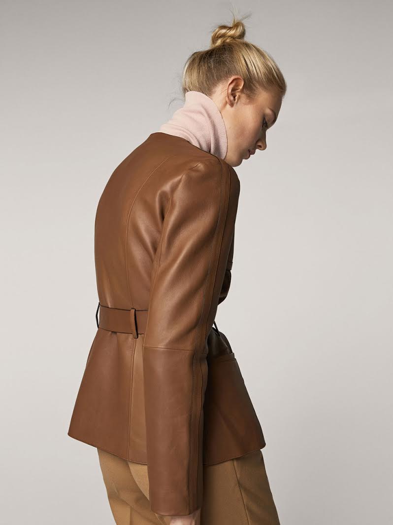 La prenda estrella es esta cazadora de piel napa en tono cognac de lazada. La firma Massimo Dutti. Los detalles en los hombros me recuerdan a la clásica chaqueta de aviadora.  Nueva y ya agotada.