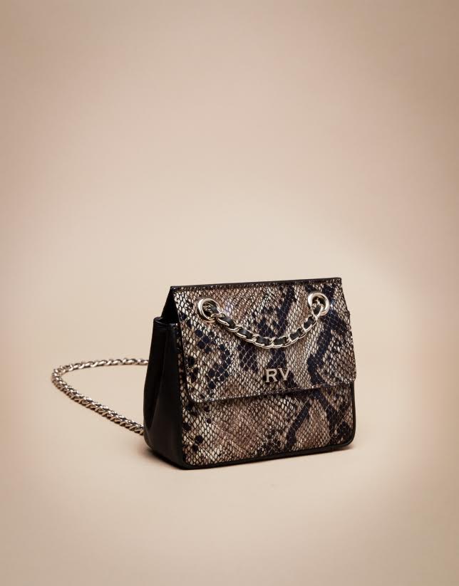 Acompañada del bolso de cadena en estampado pitón a dos tonos también de Verino.  De 150 a 105 euros.