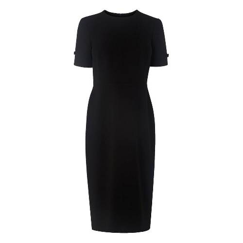 Este vestido en algodón con forro bien armado, de corte recto y mangas cortas con lacitos, un detalle discreto a la par que femenino. Lo firma L. K. Bennet. Se trata del modelo ‘Trinu”. Está de rebajas de 300 a 129 euros.