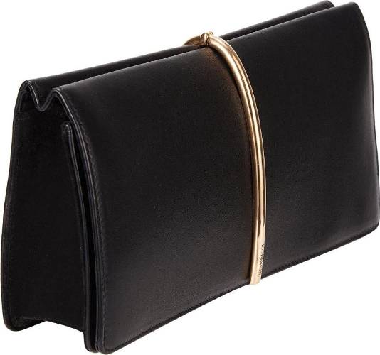 Como bolso, ¿qué tal este clutch de HB cuyos detalles de charol y piel espejan los pétalos de las mangas? Además la geometría del bolso contrarresta la ñoñez de las manguitas agregando un detalle moderno al atuendo y empatando con el charol del calzado.