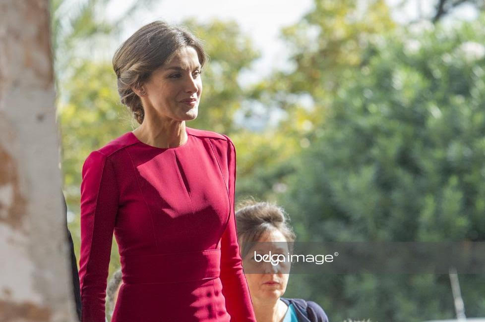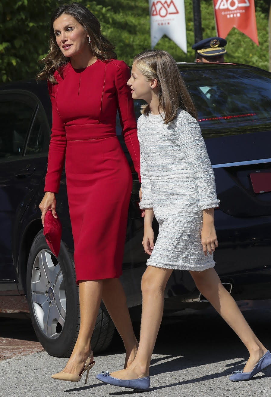 Doña Letizia ha reciclado el vestido exclusivo que diseño Carolina Herrera para el acto ante la Virgen de Covadonga hace un mes.