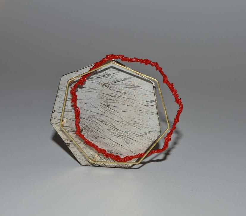 Cambio de joya: en lugar de esos pendientes tan del montón, propongo un guiño a la bella Italia con este broche artesanal de madera, metal y coral de la artista italiana Maria Rosa Franzin.