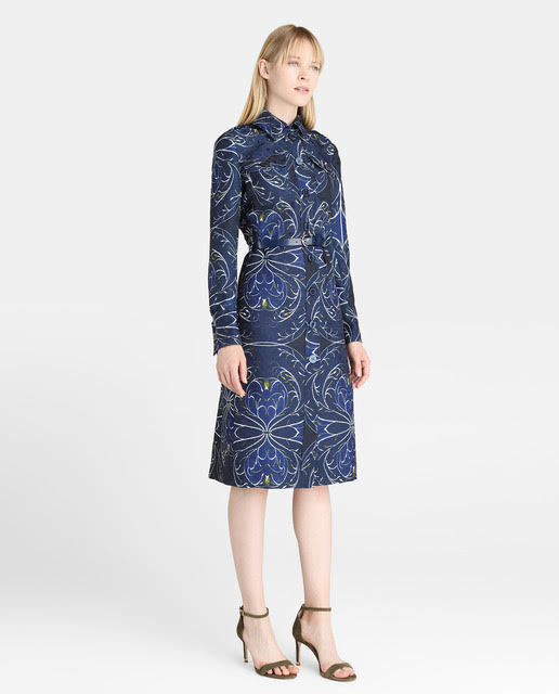 Saco del Kiki-Armario este vestido camisero de Roberto Verino de la colección del pasado otoño en Jacquard con estampado de mosaico en azules.