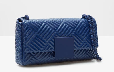 Escojo el mini bolso acolchado de Purificación García en azul Klein que destaca el azul residual del vestido. Precio: 88 euros.