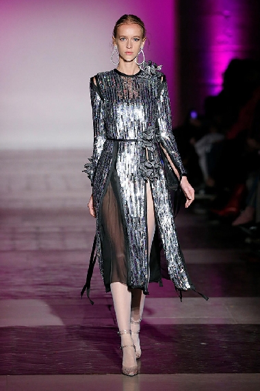 Creo que el neopreno luce mejor en un escote a la caja como los diseñados por Delpozo. El escote en V con la piel expuesta le da un aire atlético que no me convence; sin embargo, la caída de la falda es linda y queda elegante. Le doy el aprobado.