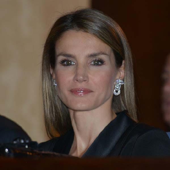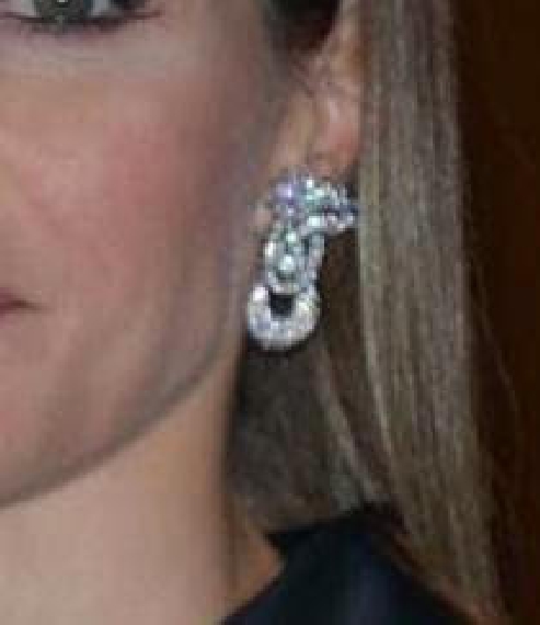He dejado los zafiros del cofre real por ser de corte más conservador y me he decantado por estos espléndidos pendientes de brillantes que no ha lucido en 9 años. Pertenecen al joyero personal de la Reina y sólo los hemos visto una vez.
