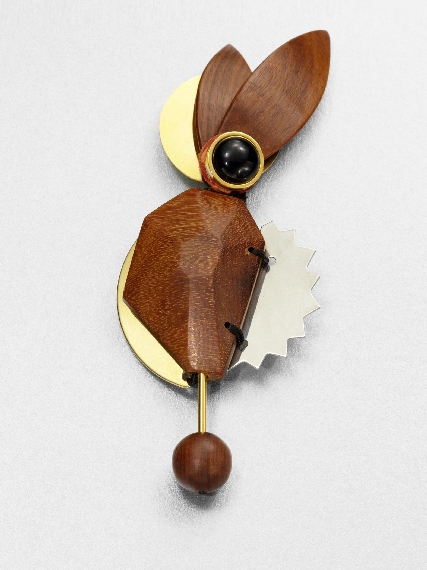 Tampoco creo que amerite quitárselo, sólo basta agregar un detalle que le brinde empaque. Me decanto por este discreto broche de Marni, que no es joyón, no contradice los pendientes de Tous y complementa el resto del atuendo.
