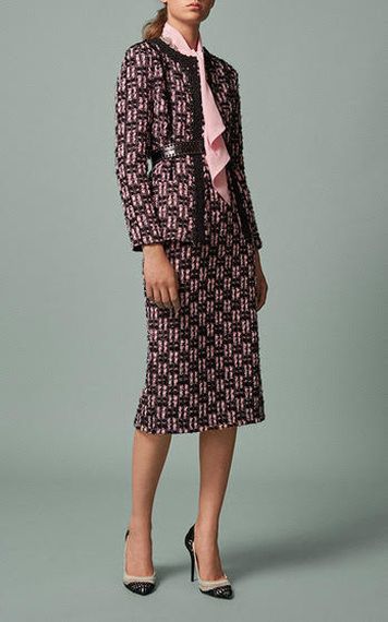 Resuelvo con este suit espléndido de Oscar de la Renta en negro y rosa donde el bicolor de los complementos nos agrega luz al estilismo.