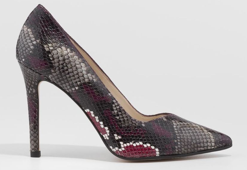 Lo he combinado con unos salones clásicos en pitón de la firma Lodi, modelo Vela. Cuestan: 131.50 euros. Están a punto de agotarse.