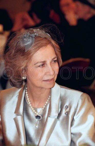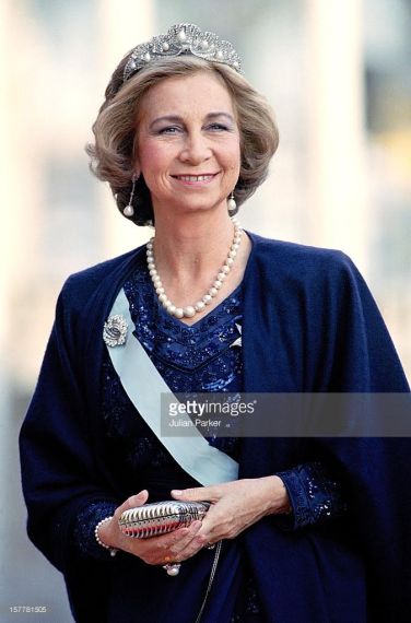 De accesorios joya, las perlas de bellota junto a un collar a juego parecido al que luce la Reina Sofía.