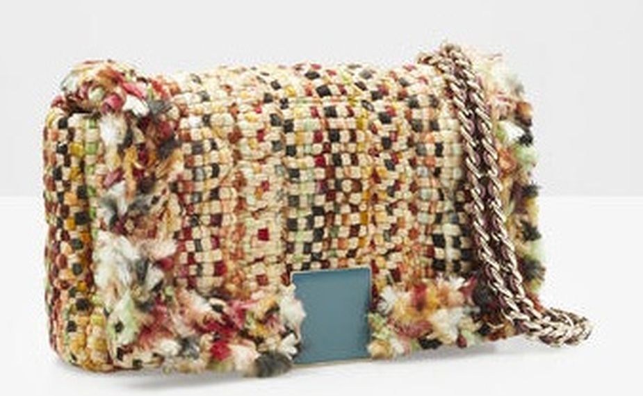 Con sus vistos salones en tono teja (sólo los zapatos) combinados son este mini bolso de lana y piel con desflecados de Purificación García. (131 euros).