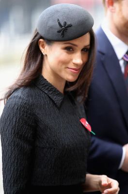 Luego me acordé de este sombrerito de Phillip Treacy en gris carbón de Megan Markle, ¿se imaginan que fuera en el tono del vestido misterio?
